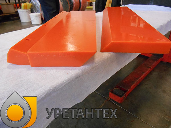 - Литьевой полиуретан. Наиболее частое применение - для амортизаторов, скребков, а также листов для футеровки емкостей.